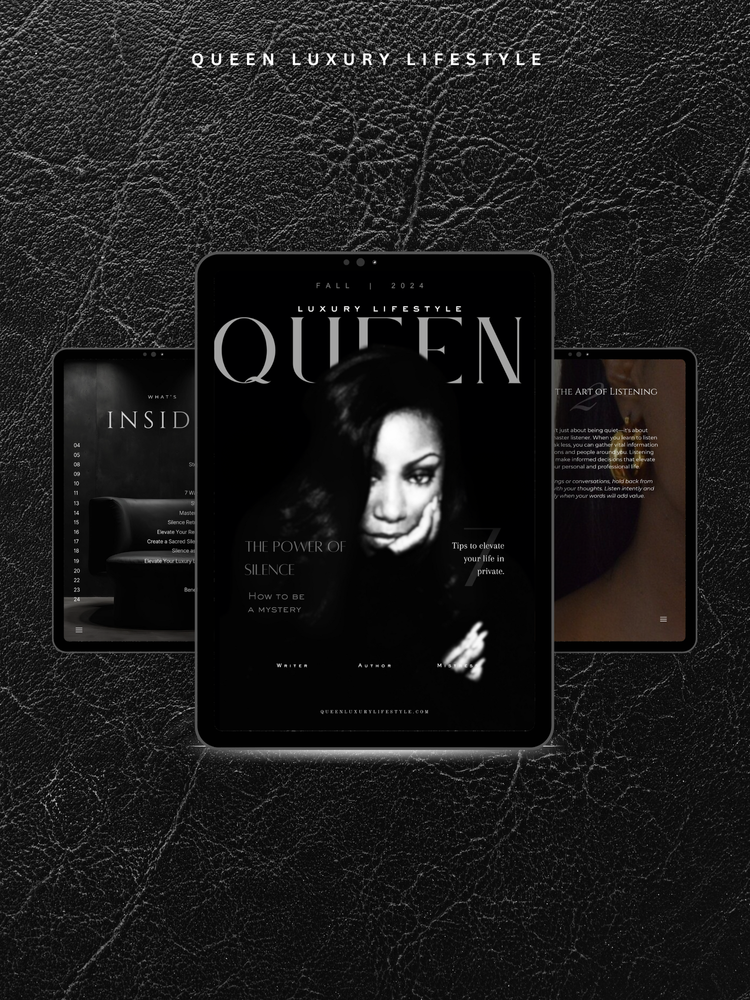 Categories: All eMagazines All | eMagazines | CODE BLACK: How-To Guide on Ghosting (Soft Version) $9.99 Functional Friday Home Reset Ritual $4.99 The Private Woman's Travel Playbook $9.99 2022 Fall Queen Luxury Lifestyle eMagazine $9.99 2025 SPRING QUEEN LUXURY LIFESTYLE eMAGAZINE. $9.99 2024 Fall Queen Luxury Lifestyle eMagazine $9.99 A Beautiful Curse: The Dark Side of Love $4.99